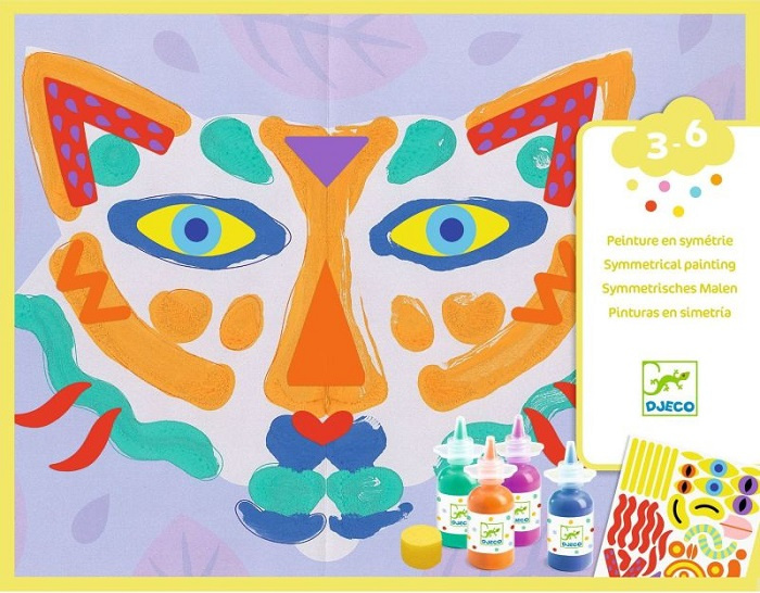 W zestawie artystycznym Odbitki Djeco do dyspozycji znajdują się 4 arkusze do malowania. To właśnie na nie należy nałożyć farby gwasz. Następnie złóżcie bardzo chłonne kartki na pół i dokładnie przyciśnijcie strony. Gdy rozłożycie szablon, ujrzycie odbitkę w postaci podobizny zwierzaka!