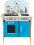 Drewniana kuchnia dla dzieci z efektami świetlnymi i dźwiękowymi Niebieska chmurka z naczyniami