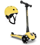SCOOTANDRIDE Kask + Highwaykick 3 LED hulajnoga składana ze świecącymi kółkami 3+ Zestaw Lemon