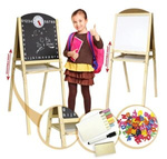 Dwustronna tablica magnetyczno kredowa z magnesami i zegarem regulacja wysokości 106 elementów