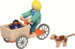 Drewniany Rower towarowy z dwiema lalkami i psem Goki Akcesoria do domku dla lalek