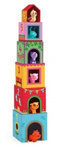 Tekturowe klocki z wesołymi zwierzątkami w swoich domkach Djeco