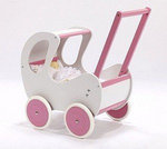 Drewniany wózek dla lalek Biała Różyczka na spacerze