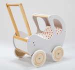 Drewniany wózek dla lalek z budką w stylu Retro, Biała różyczka na spacerze